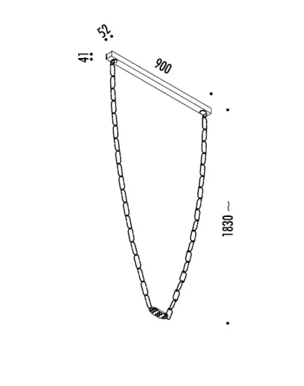 Una grande catena dorata si flette sotto il proprio peso, disegna una parabola perfetta e alimenta la maglia di luce nel punto inferiore. L’oro è il metallo per eccellenza, metafora di energia e di desiderio. Ma è anche il metallo ideale per condurre la corrente elettrica. Risplendente di bagliori aurei come la versione moderna di un lampadario della reggia di Versailles, ma allo stesso tempo lineare e semplice.