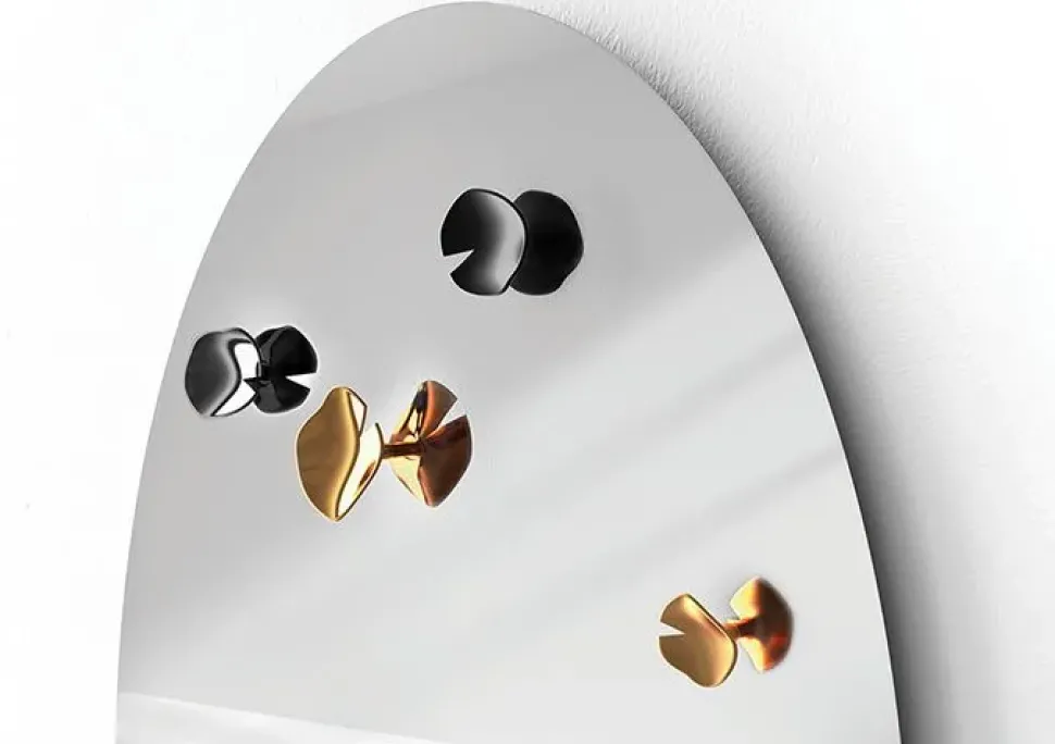 Disponibile versione con specchio a parete ovale + 4 foglie appendiabiti, la posizione delle foglie è fissa.
