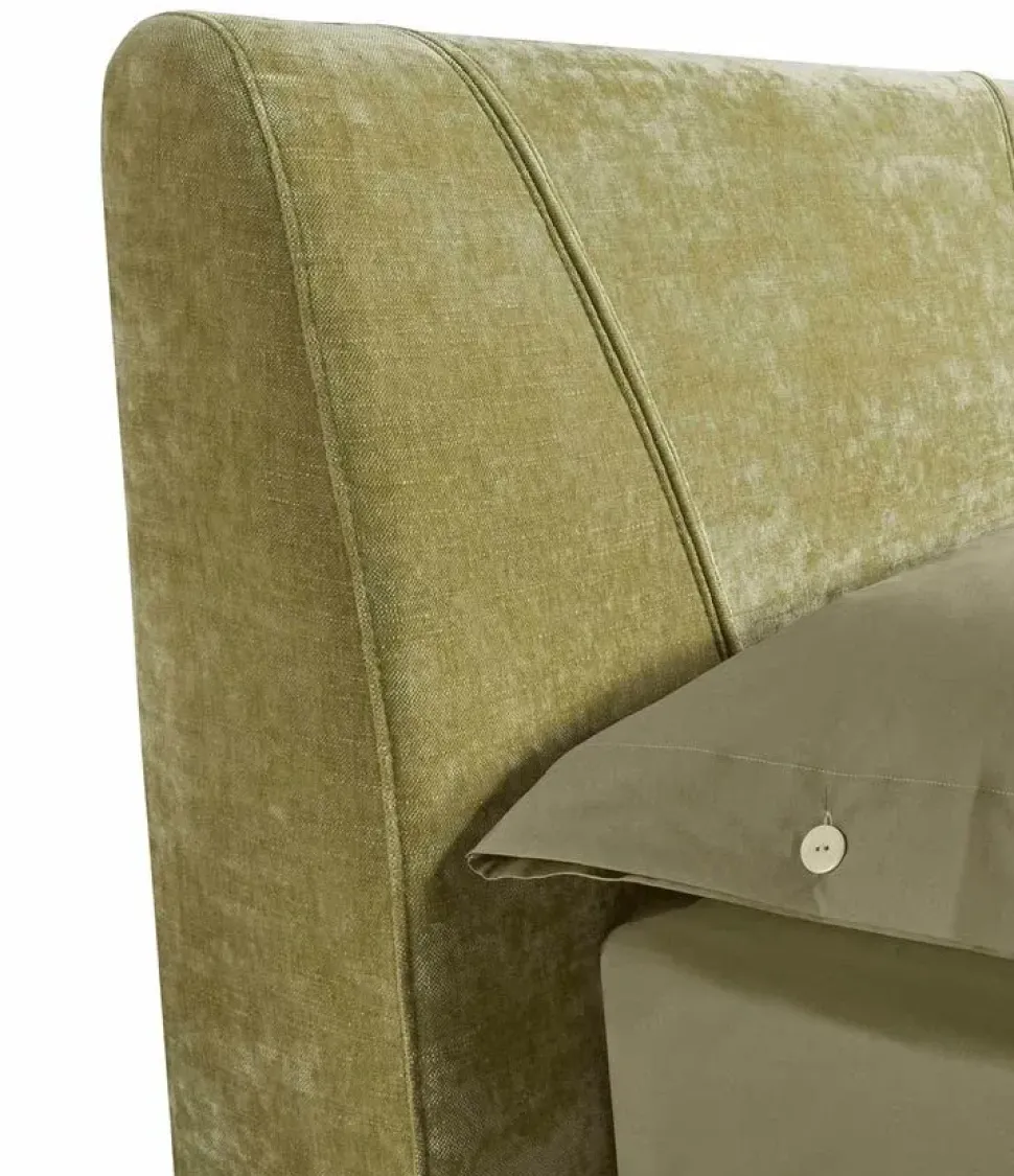 Letto matrimoniale 160 in tessuto You col.68 cat.2, set 4 piedi in acciaio cromato Traliccio H12 bronzo, fascia giroletto H22. Testata sfoderabile