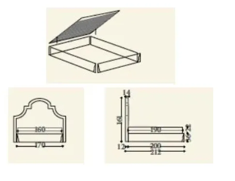 LARGHEZZA LETTO 190 CM PROFONDITA 212 CM ALTEZZA TESTIERA 161 CM