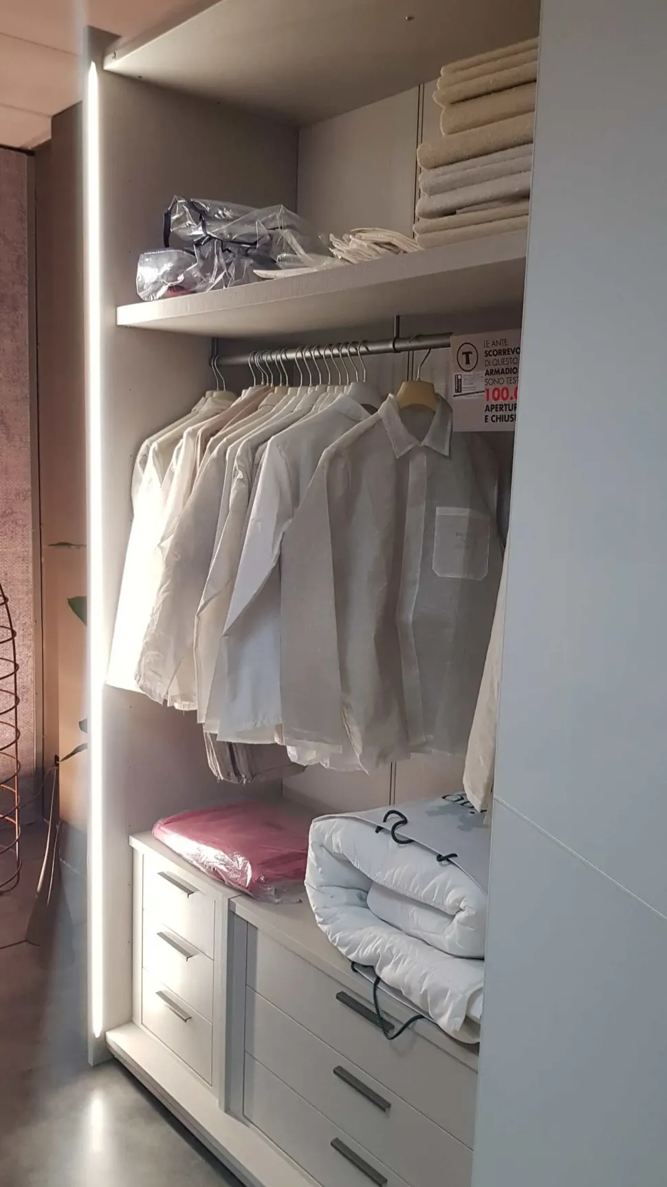 - Non sarà più difficile nel trovare o riporre oggettistica varia o i tuoi vestiti in quest’armadio, altresì se non c’è una sufficiente luce esterna, poiché è ultimato dai sistemi di illuminazione interna con luci a led.