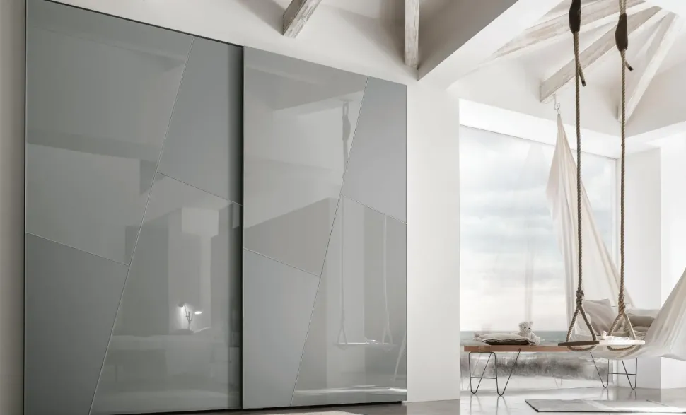 - Un armadio può essere ad ante battenti, scorrevole o a soffietto, o può perfino avere una forma a cabina: ognuna di queste tipologie è pensata appositamente per potersi inserire alla perfezione nel locale predestinato, cosicché l’armadio regali un’estrema contenitività senza mai risultare d’intralcio; il modello Kross qui visibile è con ante scorrevoli e saprà di certo ottenere il meglio dallo spazio disponibile.