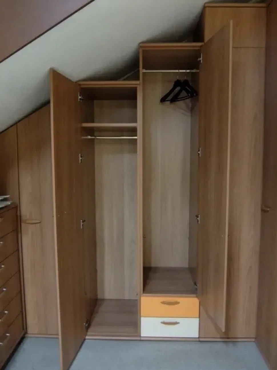 - Ogni armadio può avere un differente numero di ante, il quale non segue necessariamente le dimensioni strutturali: che sia di dimensioni più o meno estese, possiederà un certo numero di ante sulla base del modello; l’armadio Sottoscala – mansarda qui disponibile ha sei ante.
