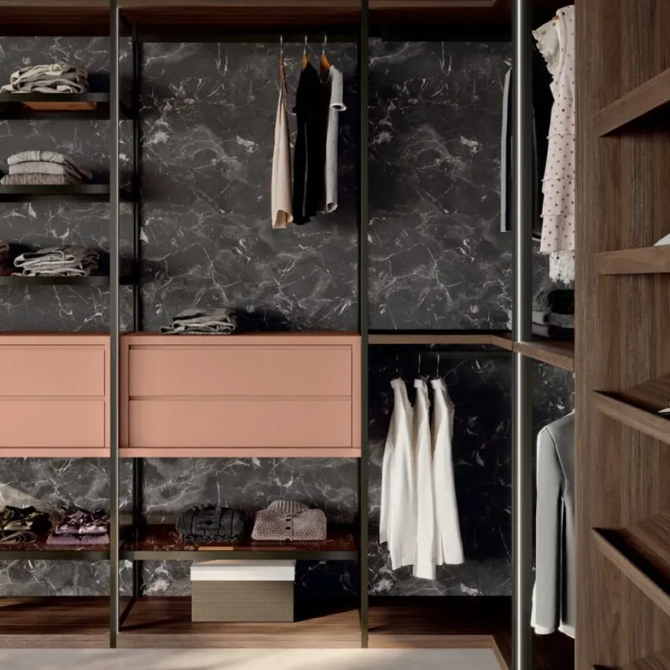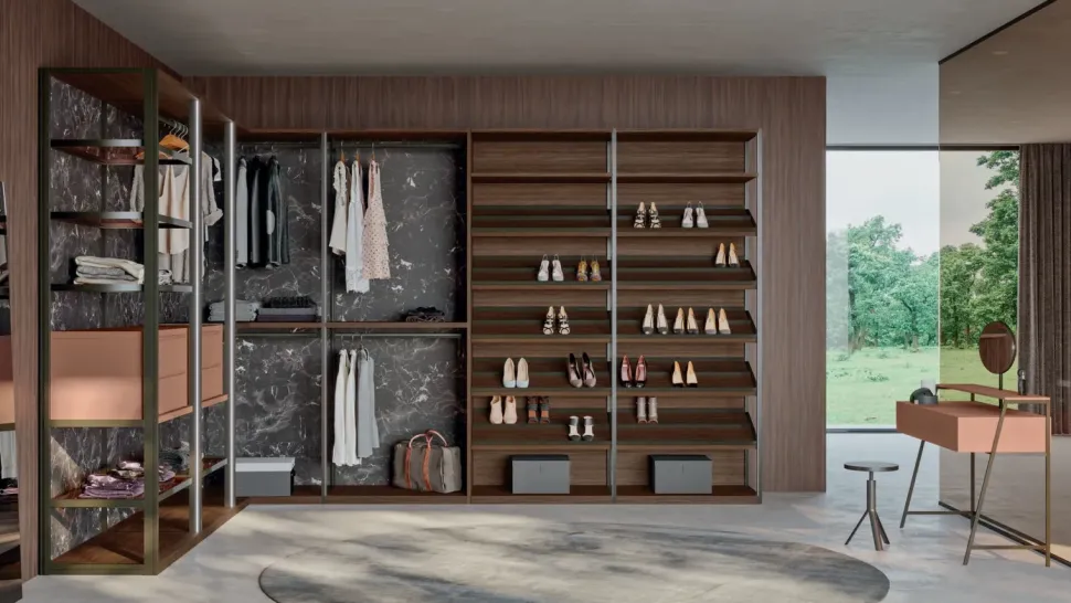 - Rifarsi a una precisa idea di stile durante la scelta degli arredi per la propria casa è essenziale, poiché gli ambienti domestici riflettono le passioni di chi li vive: nella camera da letto, anche gli armadi prendono un ruolo di primo piano dal punto di vista dell’estetica; l’armadio Cabina armadio skeletro qui presente è perfetto per completare dal punto di vista dell’estetica locali di stile prettamente moderno.