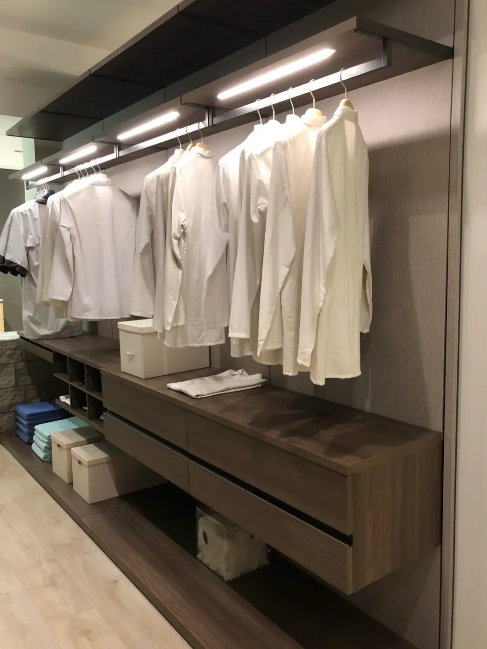 1CABINA ARMADIO MODELLO FLEXY COMPLETA DI PORTACAMICIE, PORTAPANTALONI, 4 CASSETTI, LUCI LED