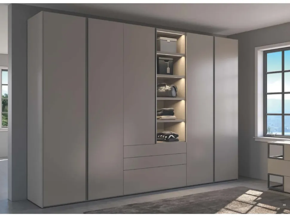 - Design unico ed una resa dall’estetica raffinata sono definiti dagli innovativi sistemi di illuminazione interna che il brand Favero ha messo a punto per questo armadio: Dylan è completato con luci a led.