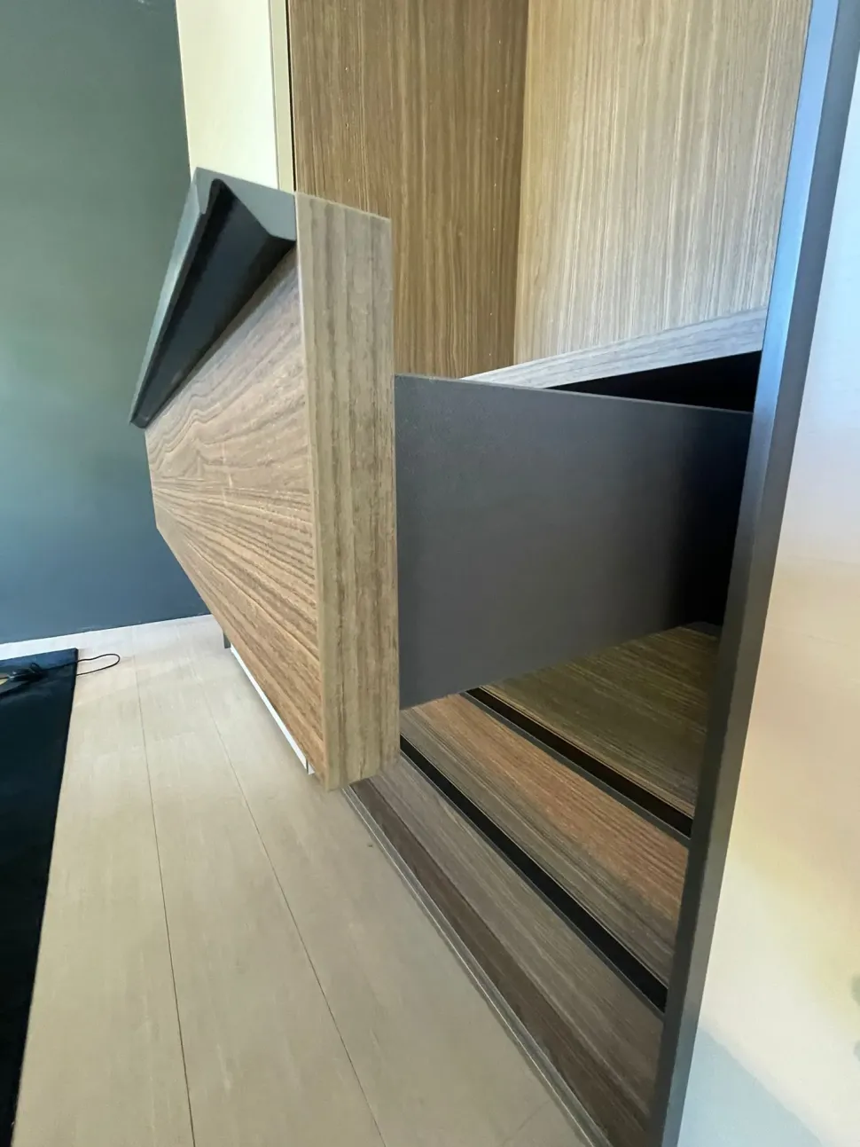 Finiture Anta: Cartapaglia Silice – Finitura Spalle: Silice – Finitura interna: Castagno Chiaro – Maniglia cassettiera interna tipo Hold e colore peltro