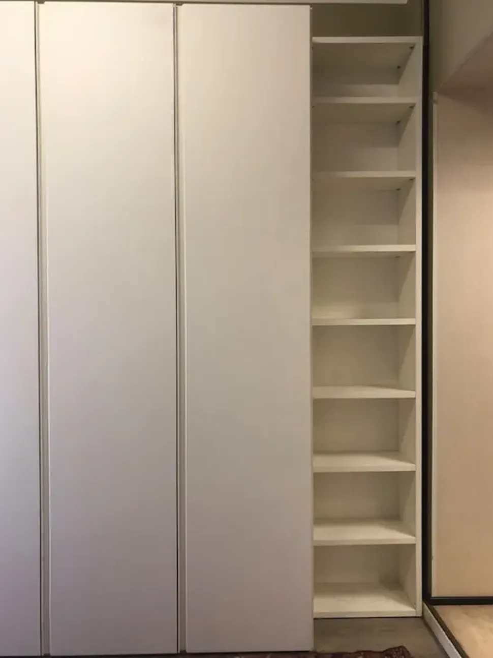 L’offerta outlet comprende la libreria a giorno, realizzata con la stessa finitura dell’armadio e posizionabile a destra o a sinistra dell armadio in base alle vostre esigenze, oppure di lato come elemento terminale-