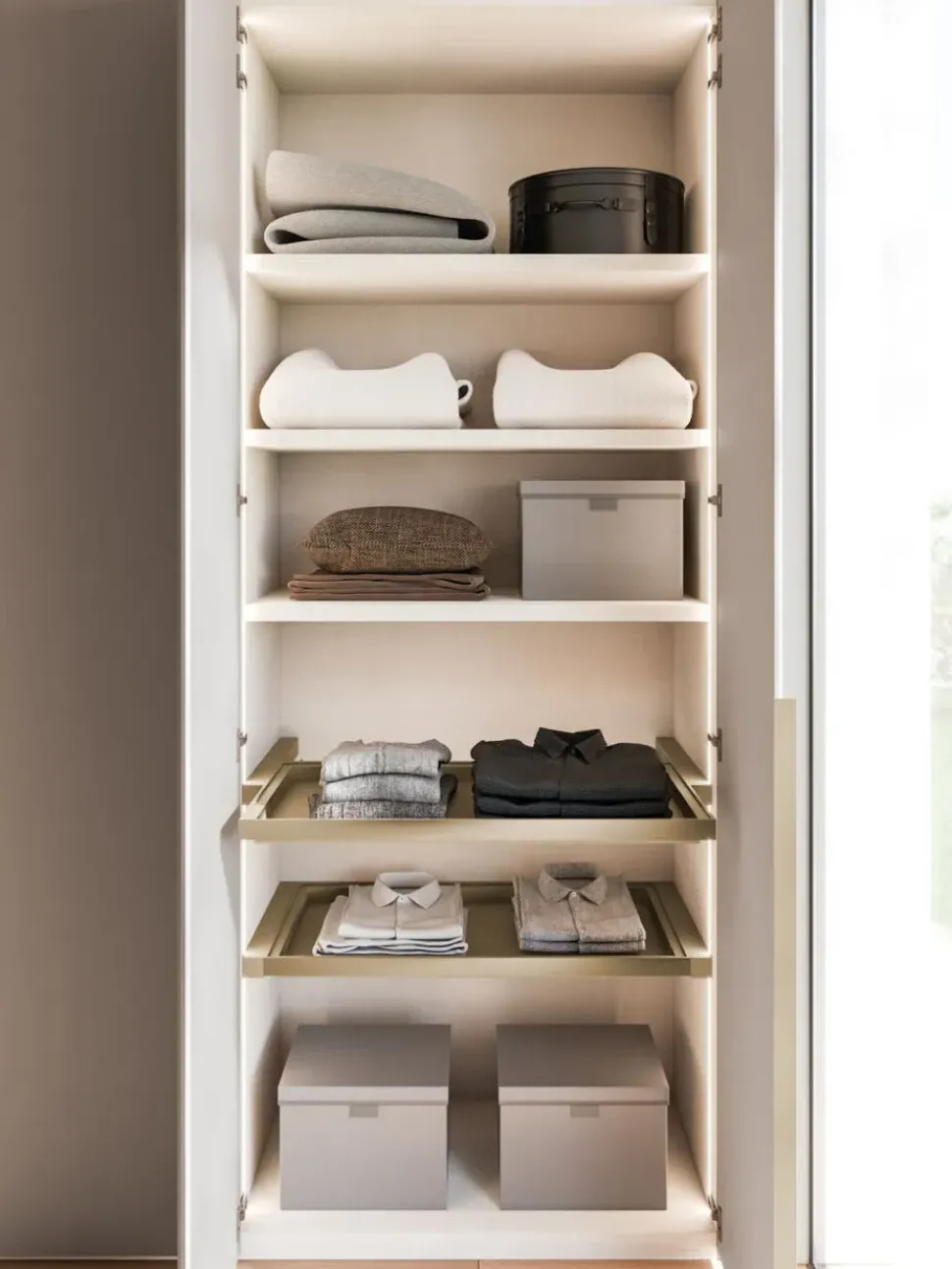 È essenziale tenere in conto il numero di ante di un’armadiatura prima di acquistarne uno, poiché dalle volumetrie dell’arredo dipenderà l’adeguata ottimizzazione dei locali: la proposta Armadio battente con anta saponetta ha quattro ante.