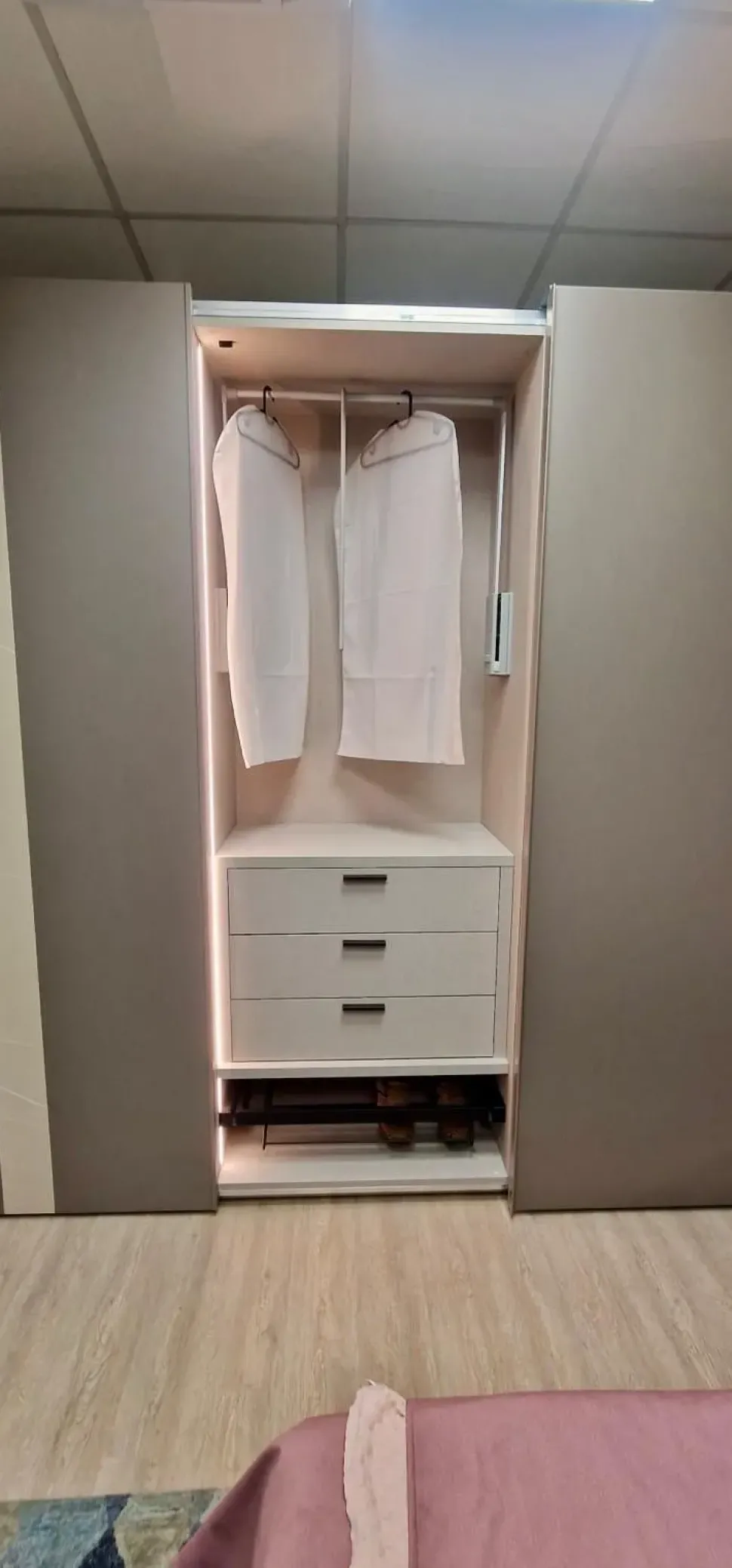 Un modello di armadio molto alto assicura di avere sempre disponibile un ampio spazio per proteggere dalla polvere i capi di abbigliamento, ma non sempre le dimensioni dei luoghi disponibili possono accoglierne uno: questo modello Terna va da 231 a 265 cm; non scordare che tra i differenti fattori da valutare prima di comprare un armadio c’è proprio la sua altezza.