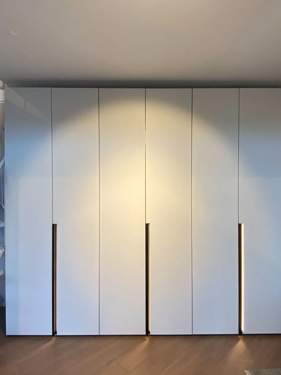 L armadio è dotato di luci a led inserite nel profilo della maniglia Tratto, che rimangono fisse, mentre quelle sulle spalle interne si accendono all apertura delle ante, grazie ad un sensore.