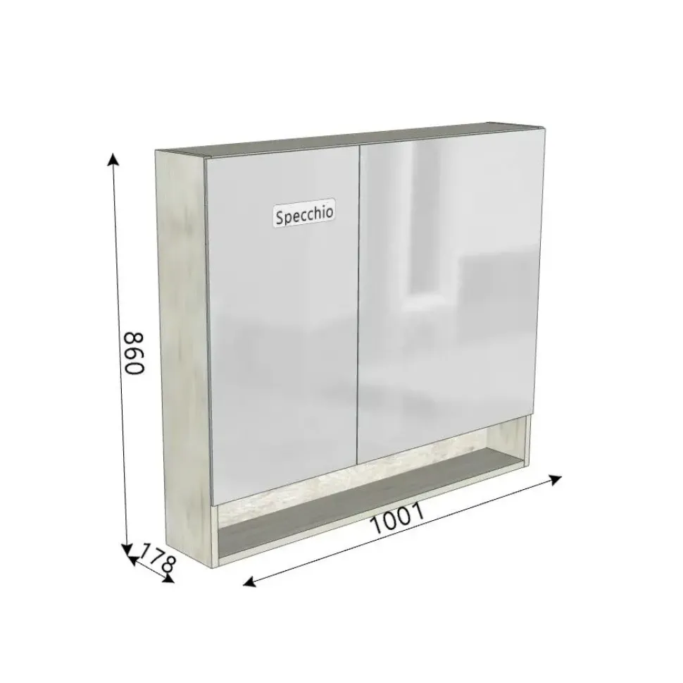 Due ante a specchio bifacciale, oltre ad un vano a giorno illuminato a Led.