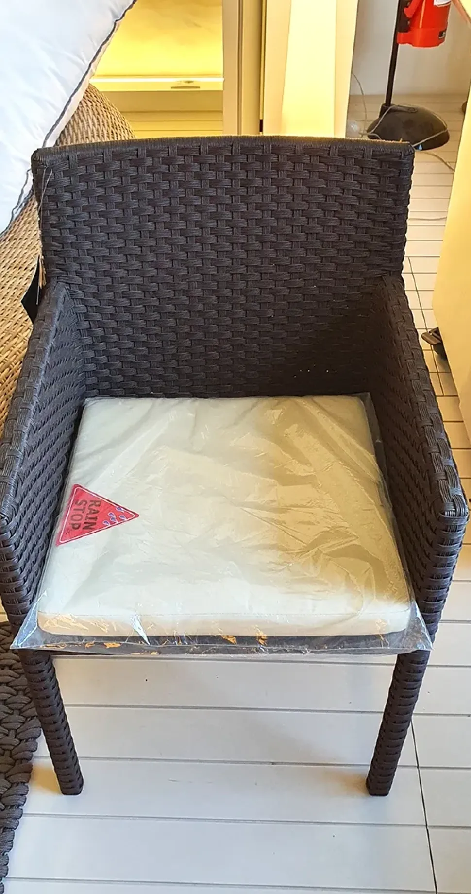 E’ incluso il cuscino per seduta realizzato con una schiuma per esterni ad asciugatura rapida e rivestito con un tessuto acrilico per esterni che ha un’eccellente resistenza allo sbiadimento del colore da parte del sole.