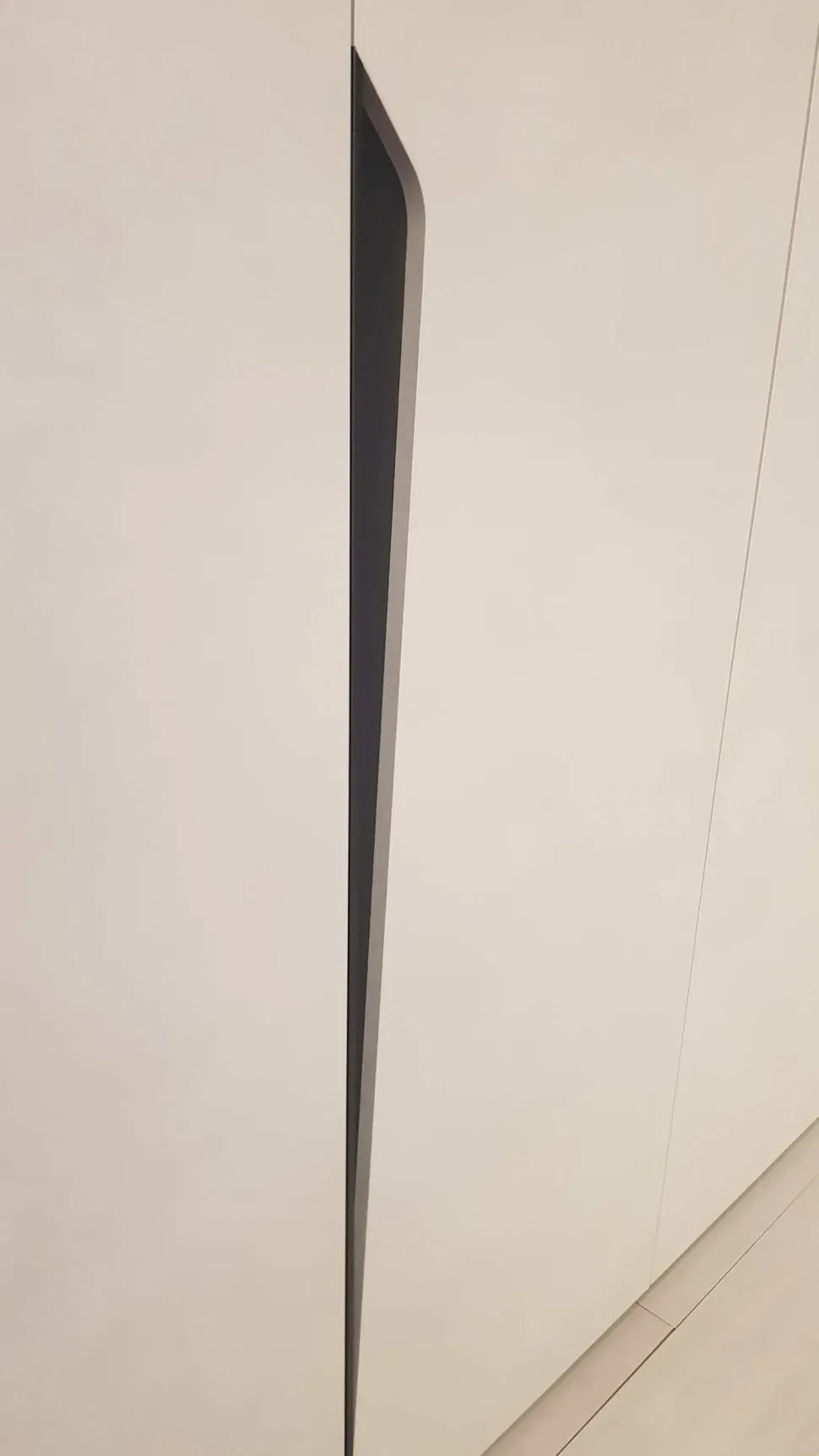 L’armadio è caratterizzato da ante battenti a forte spessore in finitura materico cemento con particolare inserto in metallo antracite ad uso maniglia dalla forma accattivante che offre una presa sempre comoda ed ergonomica.