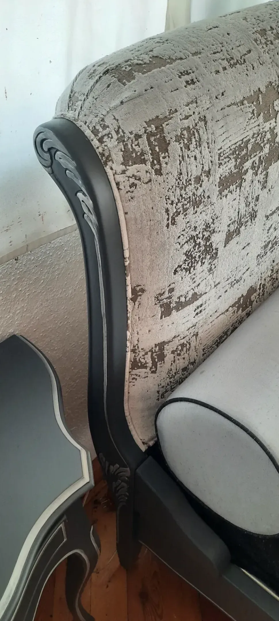 Gruppo letto in legno ,composto da letto e 2 comodini, finitura artigianale grigio con decoro eseguito a mano color tortora chiaro. testata imbottita in tessuto effetto cemento. ideale da abbinare ad un armadio moderno per dare un tocco di originalità alla vostra camera da letto e differenziarla . letto misure 179*293*115h porta una rete da cm 165×200 comodini a 1 cassetto 66*34*72h TRASPORTO INCLUSO NEL PREZZO. per qualsiasi chiarimento o informazione chiamate i nostri uffici o compilate il form qui sotto POSSIBILITA’ DI FINANZIAMENTO A RATE