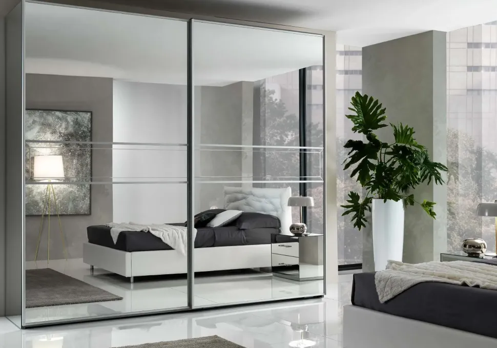 – ARMADIO CON CASSETTIERA INTERNA – Armadio FANTASY 2 ante scorrevoli con specchi incisi e fianchi a specchio