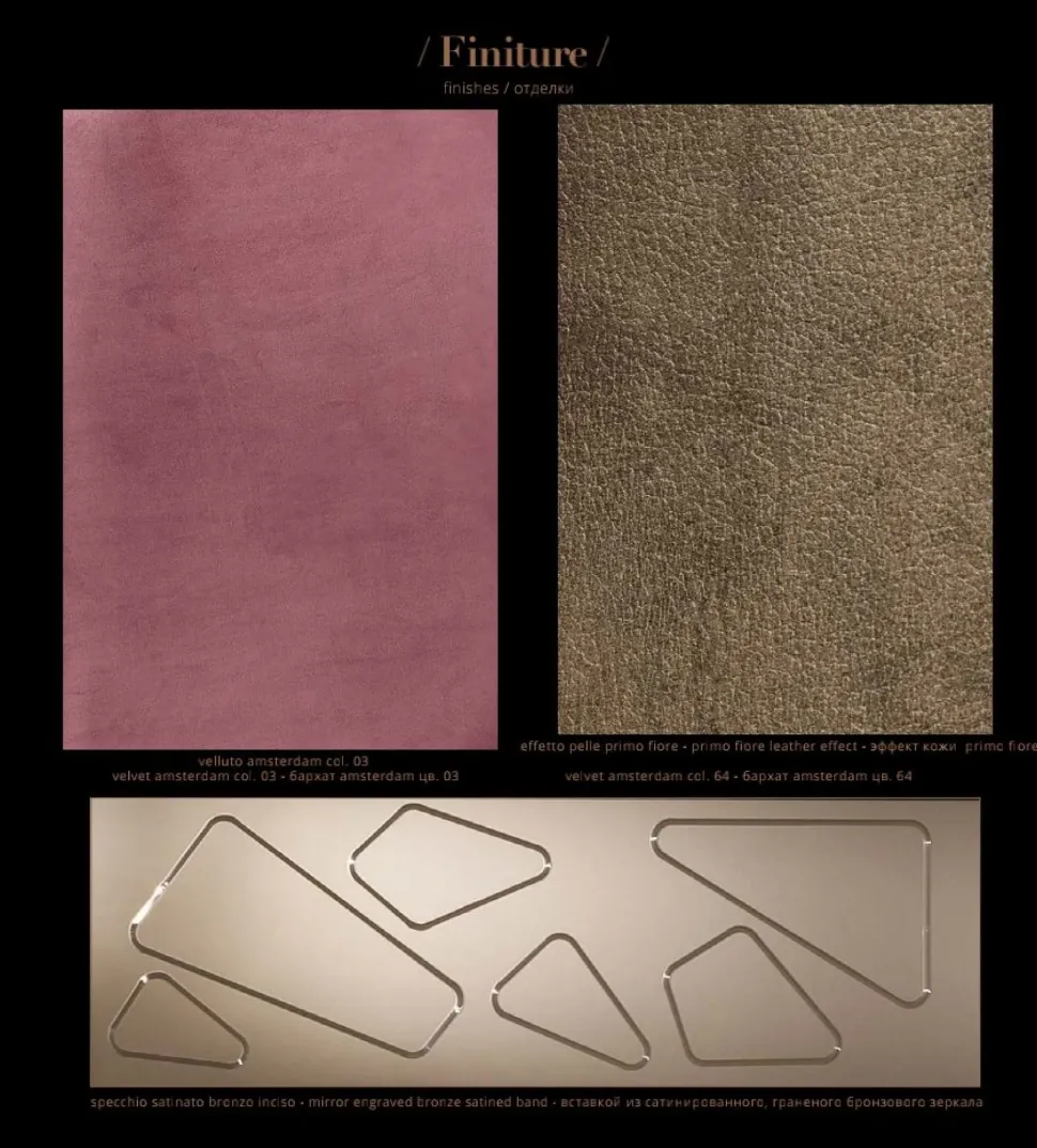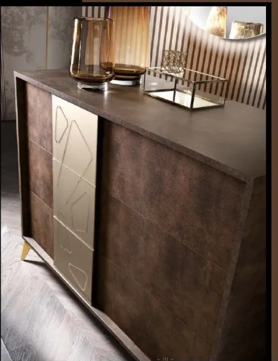 – COMO’ CON MANIGLIA A SPECCHIO SATINATO BRONZO INCISO E PIEDINI IN METALLO ORO
