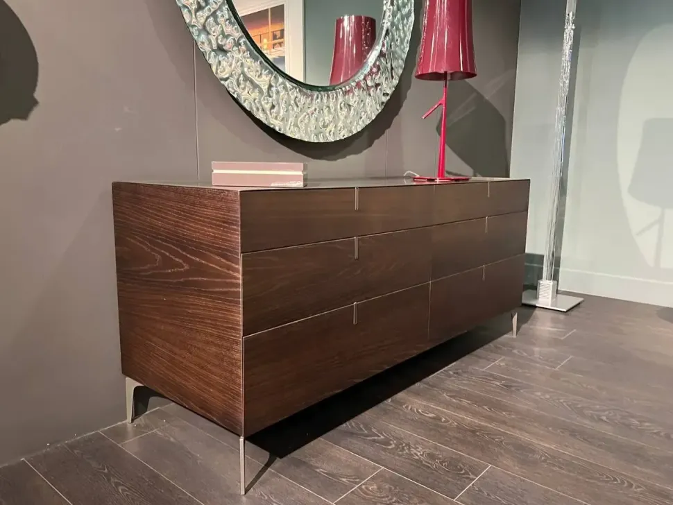 Dimensioni: L 156 H 70 Pf 53 cm 6 cassetti con frontali e fianchi rovere termotrattato e top in laccato peltrox