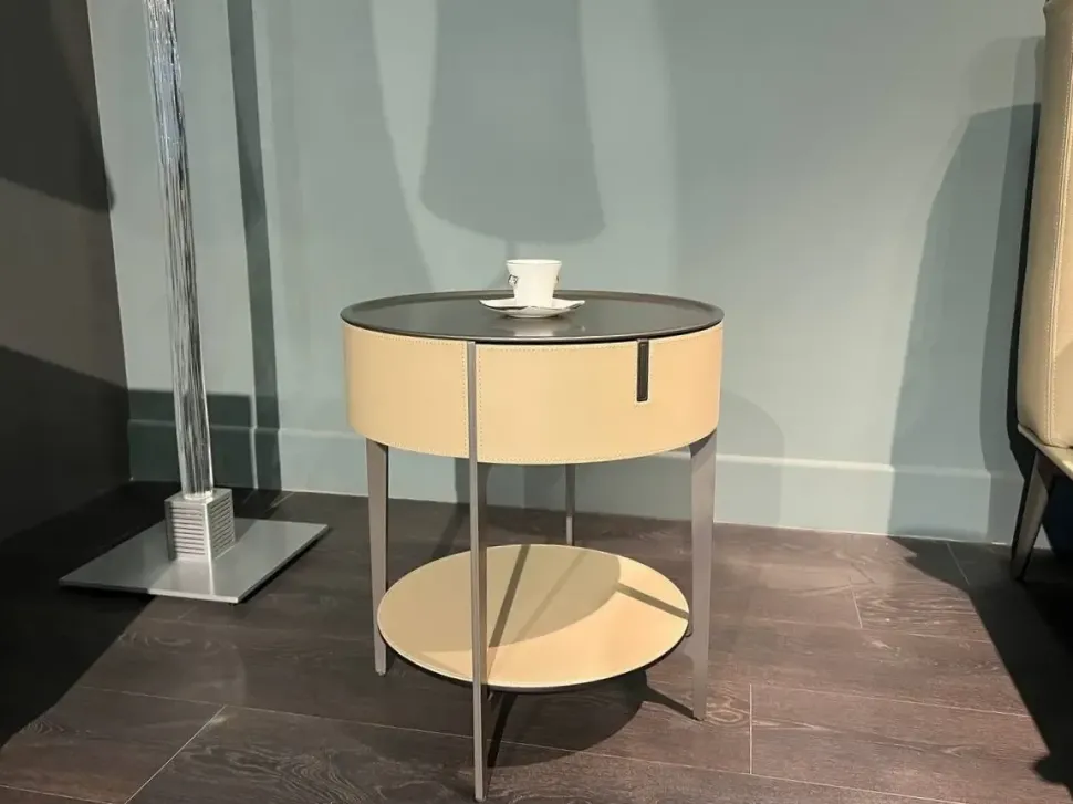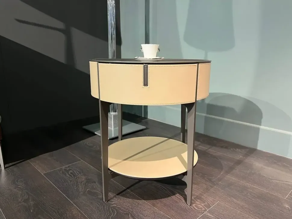 Struttura e top in laccato peltrox e rivestimento completo cassetto in CAT. Cuoio HP, col. C17 Cuoio sand