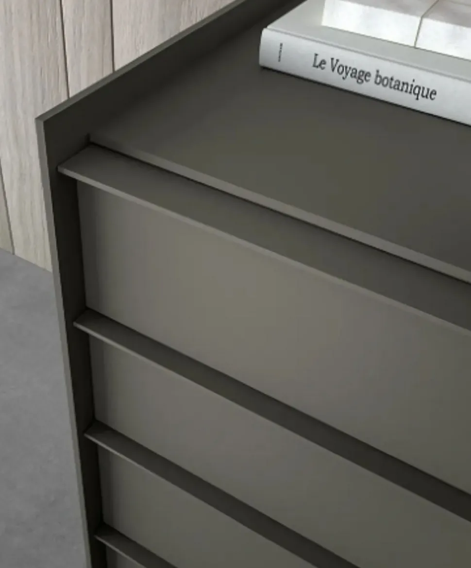 Durante l’acquisto dei mobili da posizionare nella camera da letto, occorre badare alle finiture con cui sono stati costruiti, poiché assumono differenti qualità pratiche ed estetiche distintive: il modello Stream qui visibile è in laminato di grande effetto visivo, capace di completare lo stile dell’ambiente garantendoti di avere più di un piano d’appoggio sopra al quale riporre oggettistica d’uso quotidiano nonché prettamente decorativo.