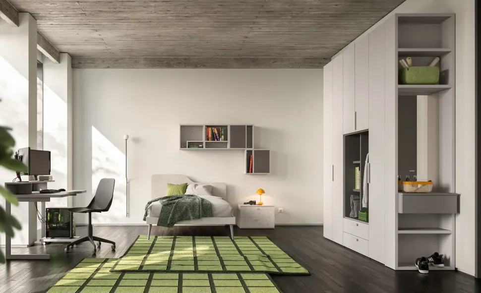 Per la cameretta Cameretta letto a terra 06, il brand Mistral ha selezionato un materiale di grande qualità: il modello qui visibile è costruito in laminato opaco, adatto per completare dal punto di vista estetico la stanza dei giovani garantendoti, anche, di avere sempre a disposizione tutta la contenitività di cui hai bisogno; questo materiale di gran classe saprà impreziosire il regno dei giovani seguendo le aspettative dei giovani e custodendo nel tempo il valore estetico distintive.