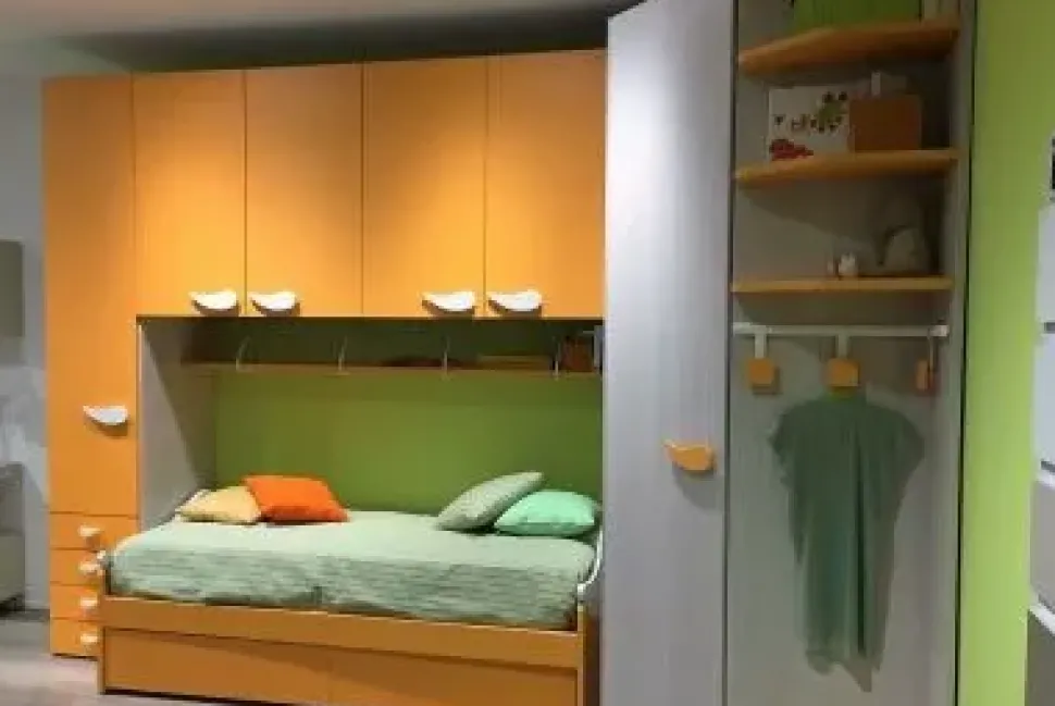 - Nella stanza dei piccoli, non solo armadi e comodini offrono un multifunzionale e ampio spazio per il ricovero delle proprie cose, ma contribuiscono pure i cassettoni estraibili: non per altro, il letto incluso nel prezzo è assai pratico e contenitivo.