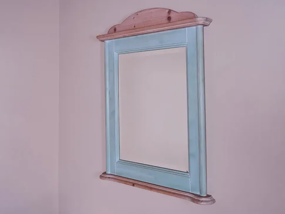 - Specchio a parete in massello di abete con cimasa in abete naturale —- Dimensioni cm L 75 x h 92