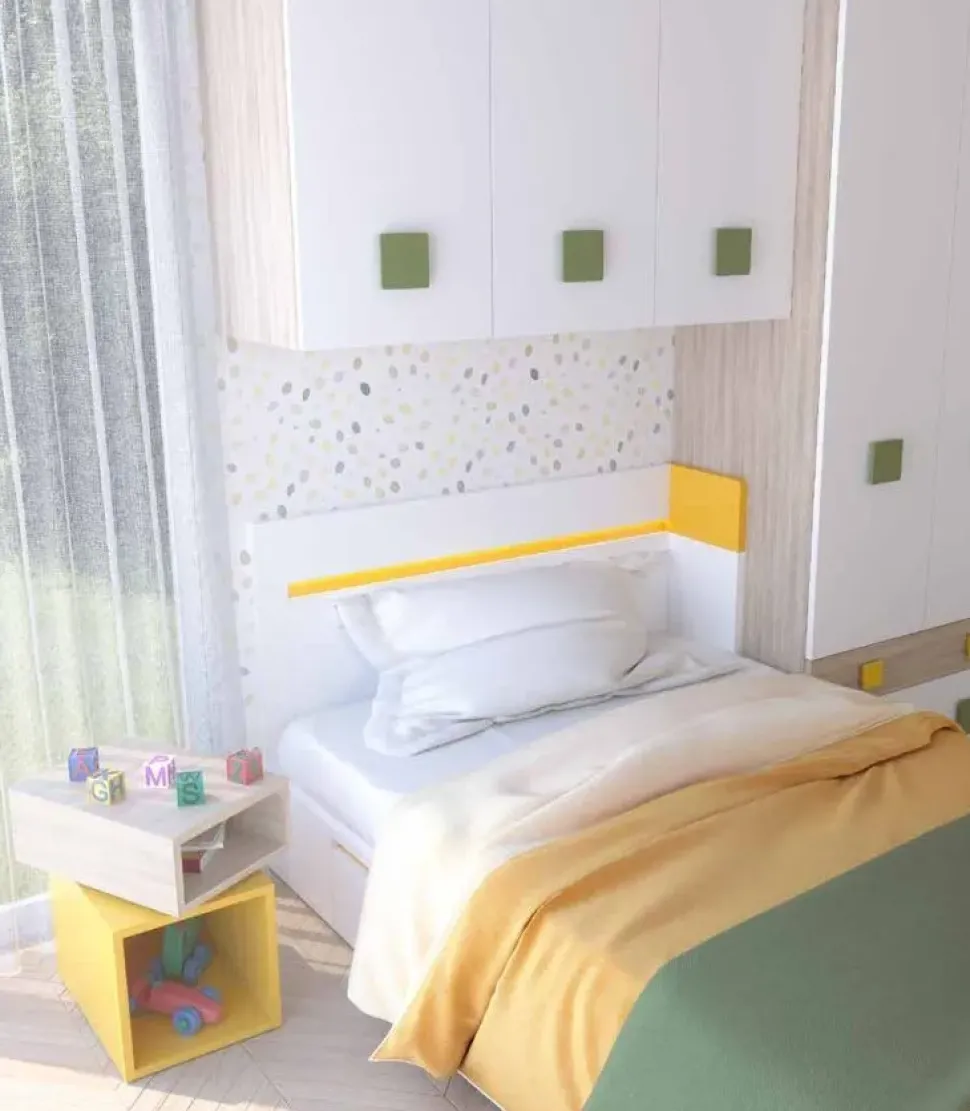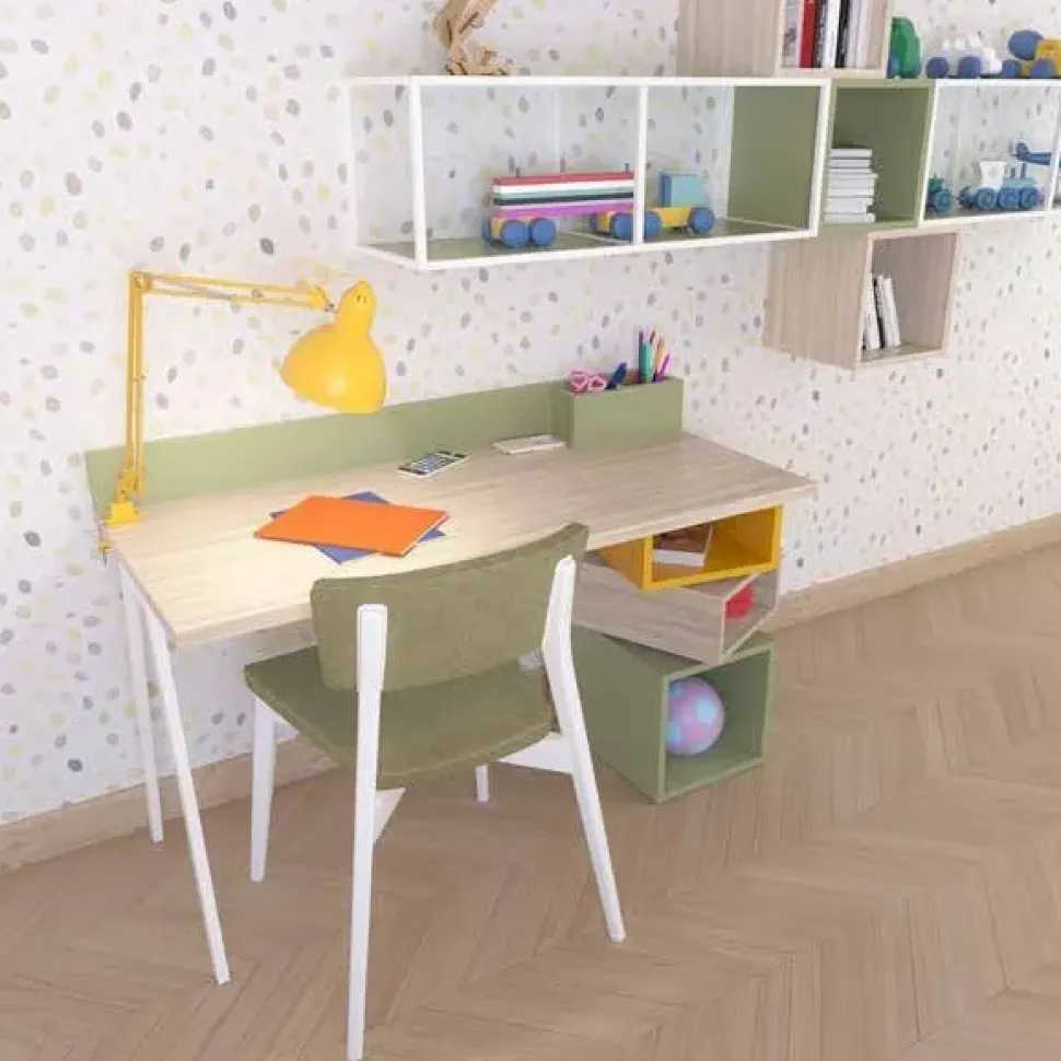 Sono molteplici le soluzioni componibili di ” LINEA IN ARREDAMENTI ” dal nuovo design e nuovi colori di finitura per arredare la cameretta e creare un ambiente accogliente e armonioso. Nell’armadio a ponte trova posto il letto di larghezza cm 120 per ottimizzare lo spazio e muoversi in libertà. E’ possibile acquistare separatamente i vari pezzi della composizione secondo le varie esigenze. E’ possibile completare/richiedere: – armadi con apertura ante scorrevole – servetto saliscendi porta abiti – cesti estraibili – specchi interni E’ possibile modificare: – misure e componibilità della composizione – finiture con colori diversi – realizzazione anche “su misura” per armadi, librerie, mensole Scheda informativa del prodotto di Qualita` MADE IN ITALY – strutture in laminato materico Classe E 1, sp.mm 18, – ante in laminato materico Classe E 1, sp. mm. 22, bordo ABS 4 lati, – struttura letto/mensole in laminato materico Classe E 1, sp. mm.30 bordo ABS 4 lati, – ripiani interni spostabili – maniglie: finitura: verde – finiture colori: olmo light, bianco, giallo ocra, verde. LA COMPOSIZIONE COME FOTO COMPRENEDE: Armadio ponte con 7 ante ad apertura battente + libreria con vani a giorno completo di: – 4 tubi inox portabiti – 4 ripiani – misure: L. cm 342 x P. 58 x H. 225 Letto – rete, struttura in metallo verniciato a fuoco, pianale con doghe in legno – misure: L. cm 120 x P. 200 – materasso escluso. Comodino – misure: L cm 32 x P cm 43 x H cm 52. Scrittoio – misure: L. cm 130 x P. 60 .Libreria pensile – misure: L cm 224 x P cm 32 x H cm 98. Sedia esclusa-