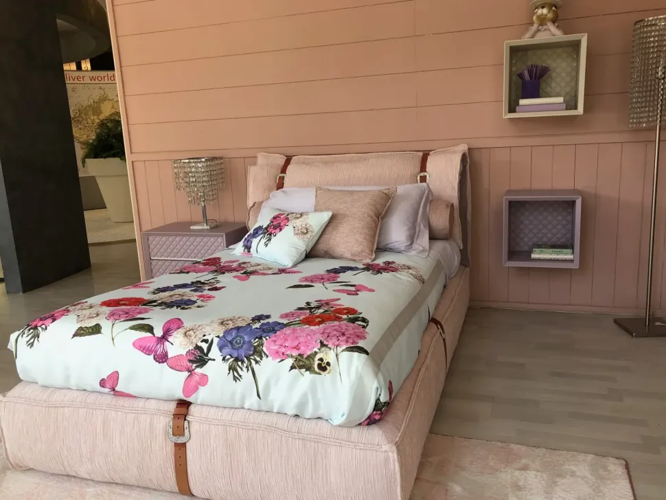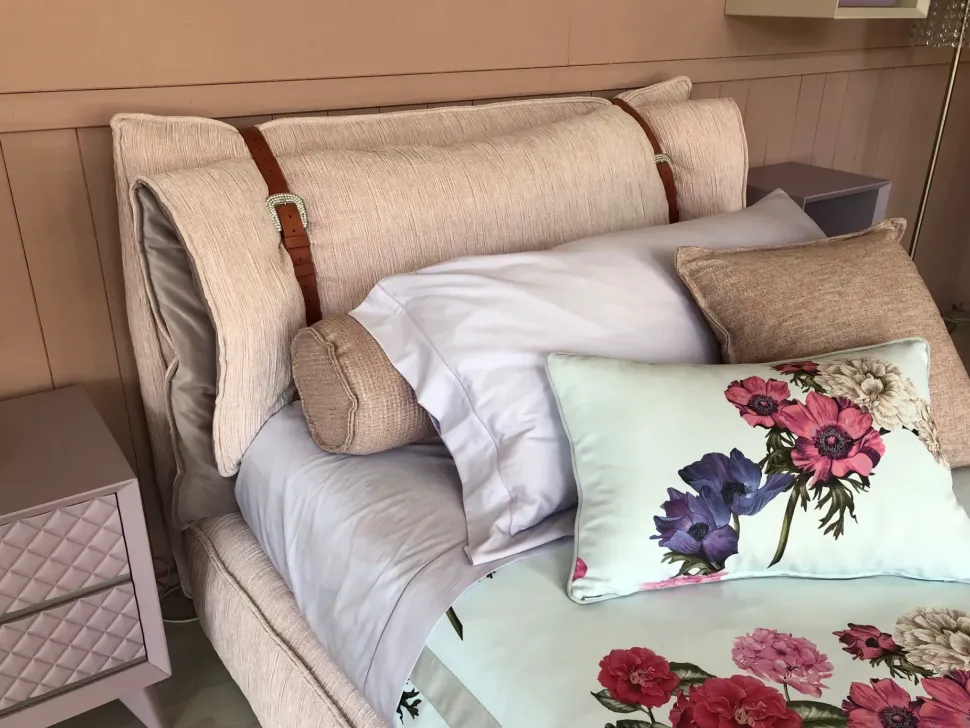 1 LETTO JORDAM CM 120 DA CM 147 X 223 IN TESSUTO CON CINTURA CUOIO COMPLETO DI SET LENZUOLA RASO ELITE, RULLO, SACCO COPRIPIUMINO, IMBOTTITURA TERMICA, CUSCINOCM 60X40 CUSCINO CM 50X50