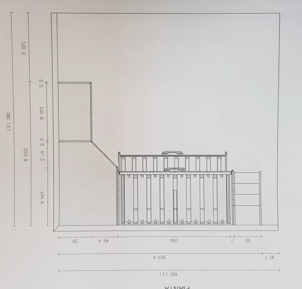 Cameretta Moretti Compact composta da letto a soppalco, scrittoio, e secondo letto a cassettoni reti a doghe e materassi a molle. La composizione è arricchita da una cabina armadio e modulo a 2 ante. Dimensioni l.369,4 p.259,8 h. 258.