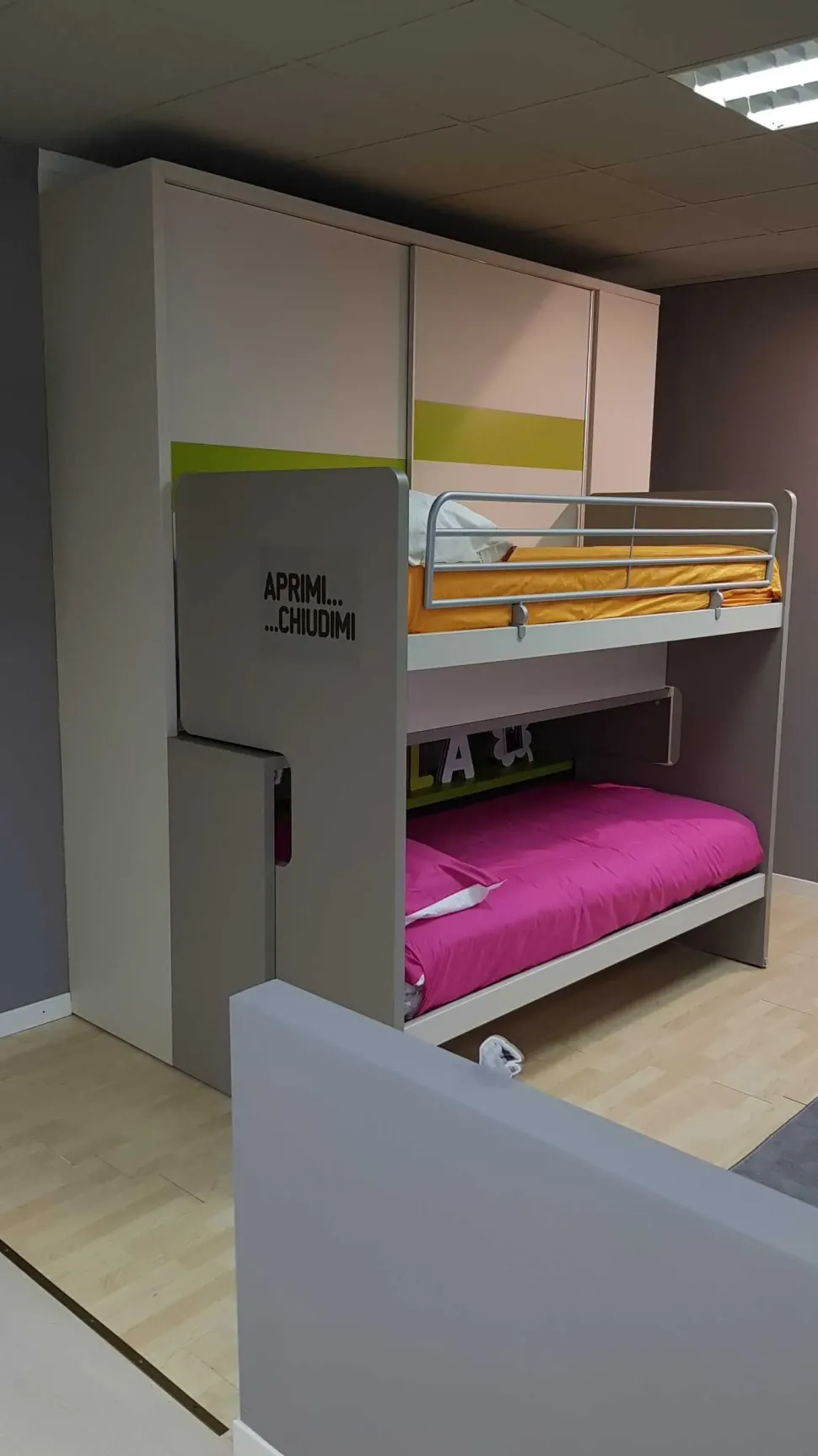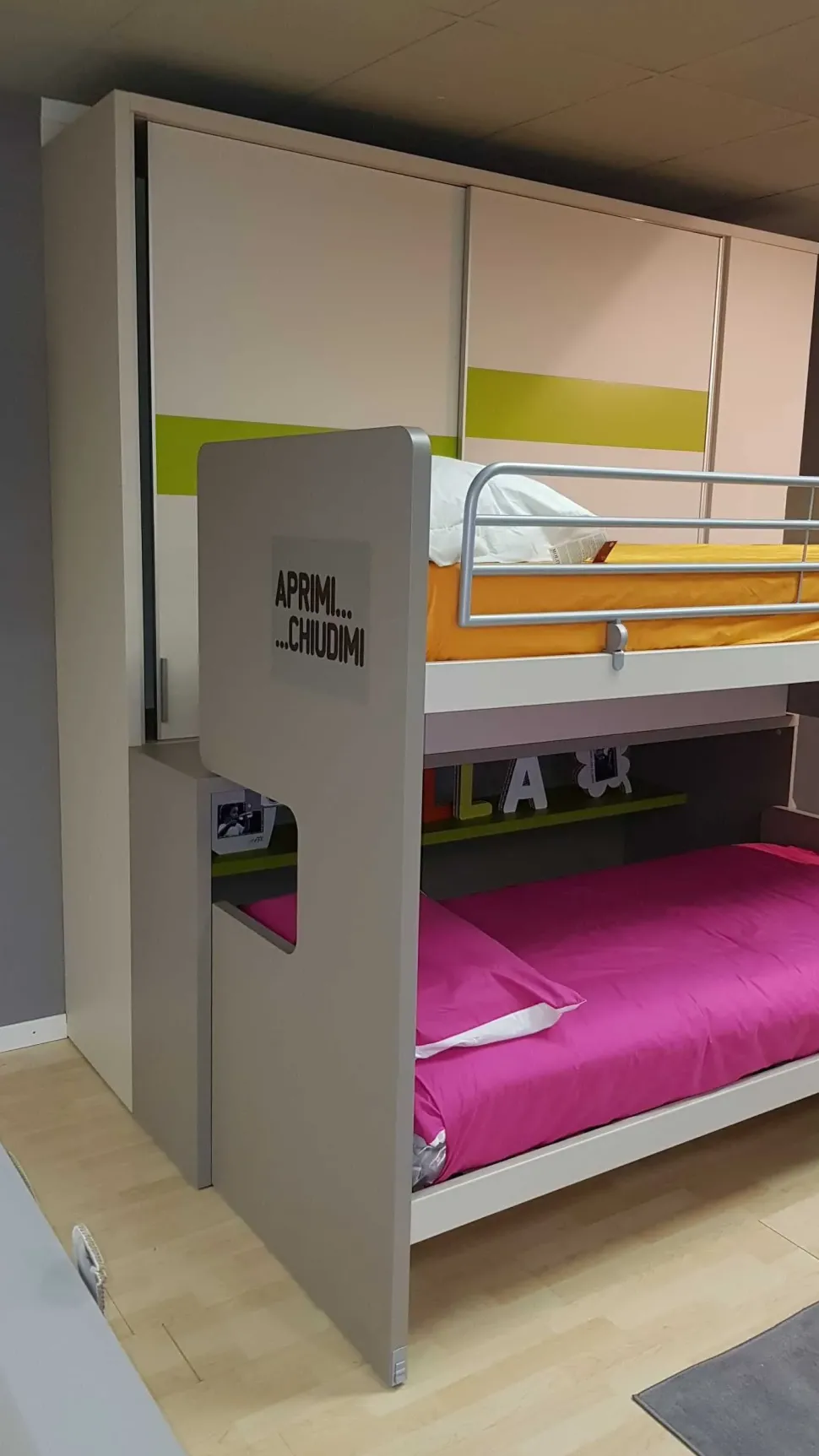 - Lo spazio junior deve risultare arredato tale da assicurare una serena routine quotidiana ai più piccoli, in un ampio spazio che regali loro la totale libertà di divertirsi e riposare sempre seguendo il loro carattere: il brand propone una quasi infinita gamma di tipologie di camerette per le più svariate esigenze, da quelle a terra a quelle salvaspazio, da quelle per neonati a quelle per adolescenti; il modello Merlinoqui presente appartiene alla collezione di camerette con letti a castello.
