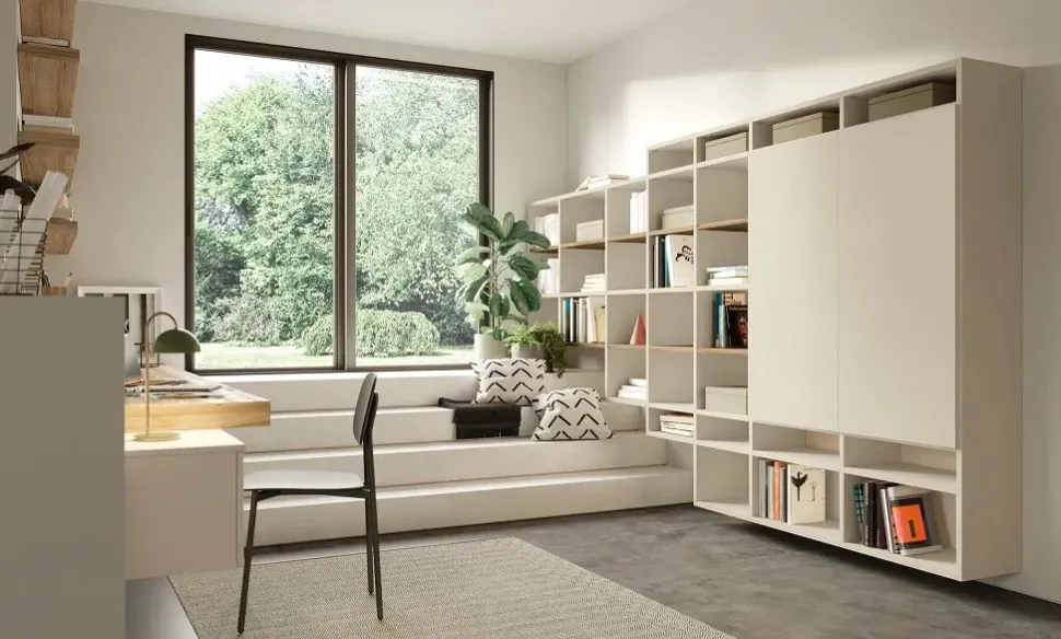 - Dato che la cameretta è spesse volte l’ambiente in cui i tuoi figli studiano, questa soluzione include uno scrittoio per cameretta Febal, in grado di conciliare alla perfezione doti di funzionalità e stile.