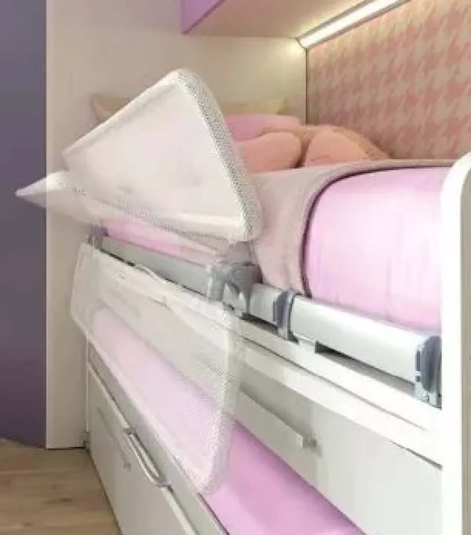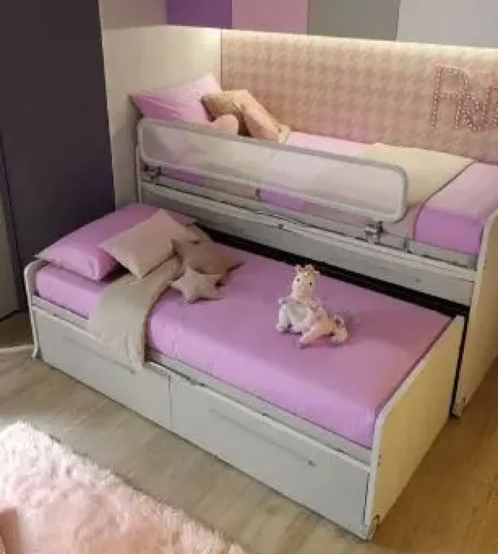 - Spesso i nostri bambini invitano i loro amici a casa, per divertirsi o studiare, per questo le loro camerette devono essere spaziose e attrezzate al meglio: con il secondo letto estraibile incluso in questa proposta, non potrà mancare lo spazio per ogni eventuale ospite.