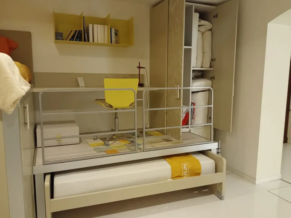 - La cameretta è lo spazio in cui i tuoi figli riposano, si divertono, studiano: in sintesi è lo spazio completamente deputato ai più giovani che, riflettendo il loro carattere, fornisce loro gli input necessari per far fronte alla propria vita quotidiana con vitalità e serenità; tra una vasta scelta di camerette di ogni genere, da quelle a terra a quelle estremamente compatte, da quelle per bebè a quelle per teenager, proponiamo in Offerta Outlet il modello Tumudei tiramolla, ossia una cameretta con letti a soppalco scorrevole.