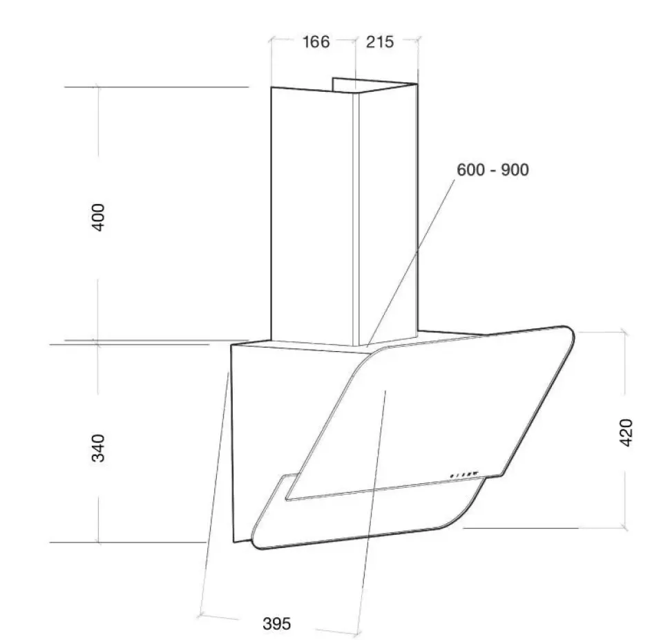 Griglia metallica antigrasso Uscita fumi ø 120 mm Colori Bianca con vetro bianco o nera Faretti led 2 x 2,1W – 4000K Aspirazione 500 m3/h Pulsantiera touch 5 velocità Misura CM L. 90