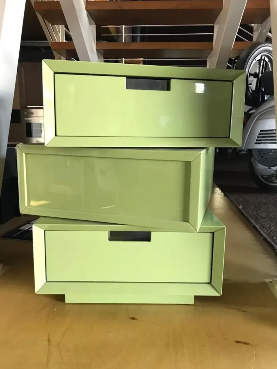 tre cassetti con maniglie in acciaio a scomparsa