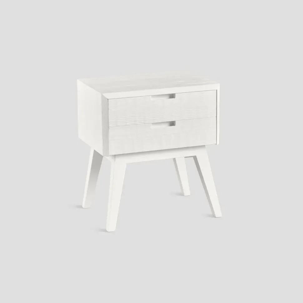 Comodino a 2 cassetti, realizzato in legno massello di Conifera lavorato a mano.