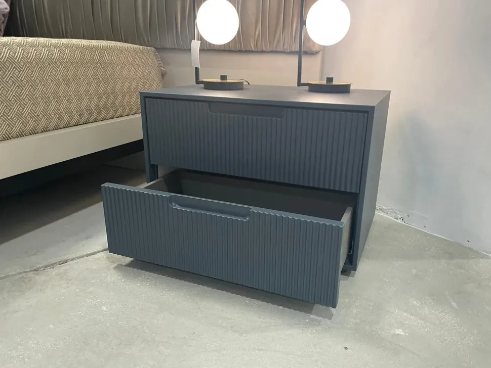 Se desideri comodini in laccato opaco per la tua zona notte, il modello Gruppo notte grecato in foto sarà l’ideale.