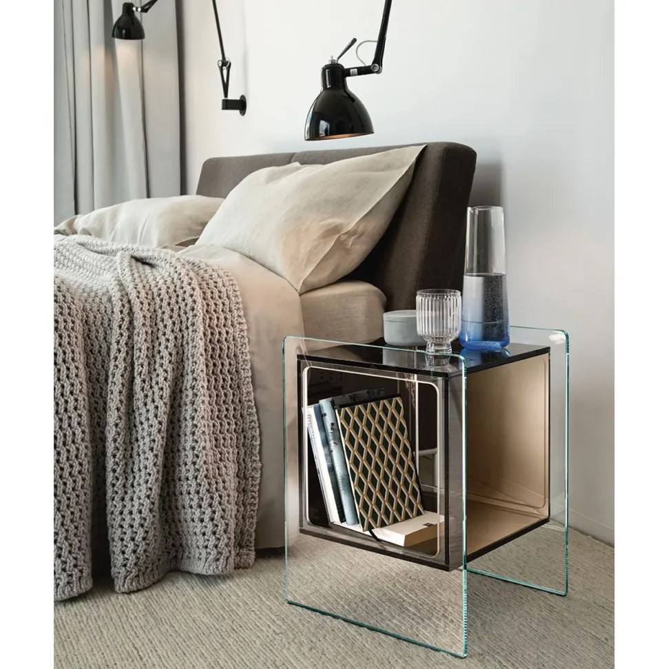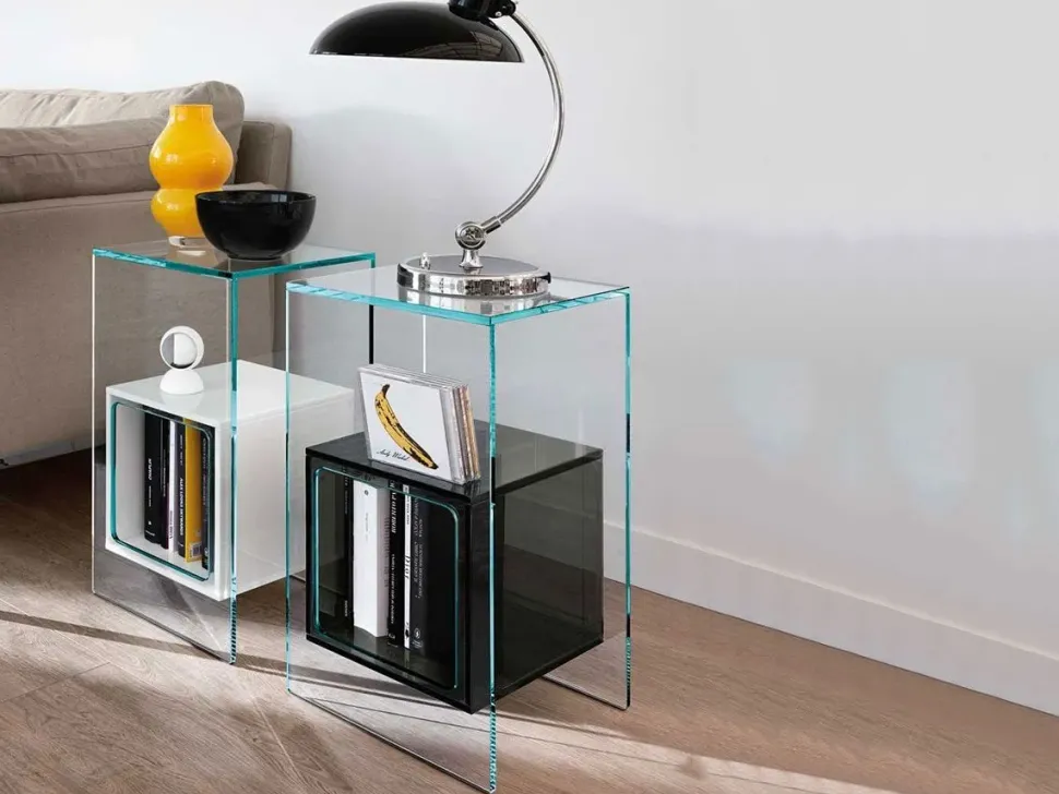 Forme decise e materiali di qualità caratterizzano tutti i comodini Fiam: scopri il modello Magique tavolino comodino in laccati lucidi qui disponibile e completa la tua zona notte.