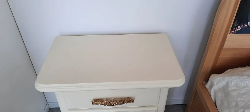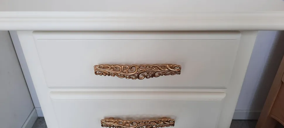 Comodini artigianali , completamente in legno e laccati con processo manuale , DISPONIBILI IN QUANTITA’ ,laccato avorio chiaro opaco con maniglie color oro satinato, personalizzabili in tutti i colori.