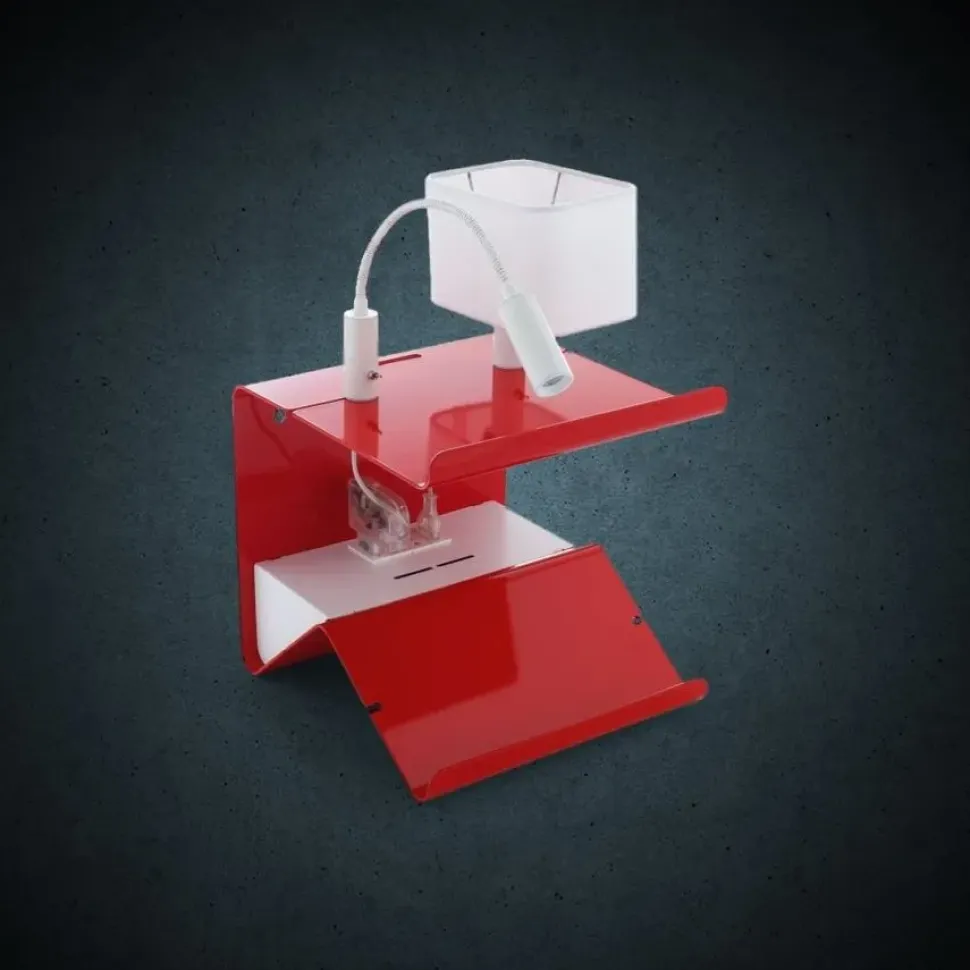 La piattaforma Multi4 è un oggetto d’arredo multifunzionale dal design ergonomico che permette un facile e sicuro piano d’appoggio e ricarica per cellulari, tablet e qualsiasi altro piccolo apparecchio elettronico hi-tech. Multi4 può essere utilizzato come semplice base a terra o fissato a muro ed è provvisto di due incavi ai quali è possibile agganciare un piccolo abat-jour e/o un flessibile led da lettura. È dotato di multipresa per la ricarica contemporanea di più apparecchi elettronici e di passacavi per dare ordine all’intreccio di fili. L’utilizzo dell’alluminio curvato lo rende forte e durevole nel tempo. Un prodotto di qualità e di design interamente realizzato in Italia.