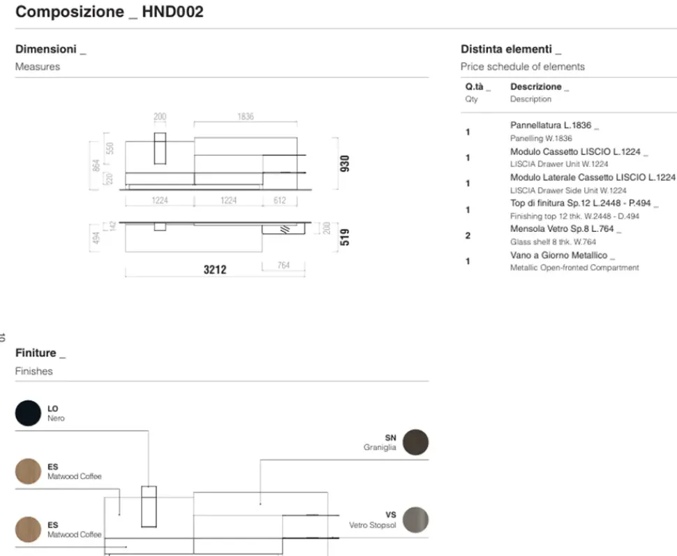 Composizione Sanremo , completa di tutti i mobili e oggetti accessori di cui hai bisogno per il tuo living: trasporto escluso per questa proposta.