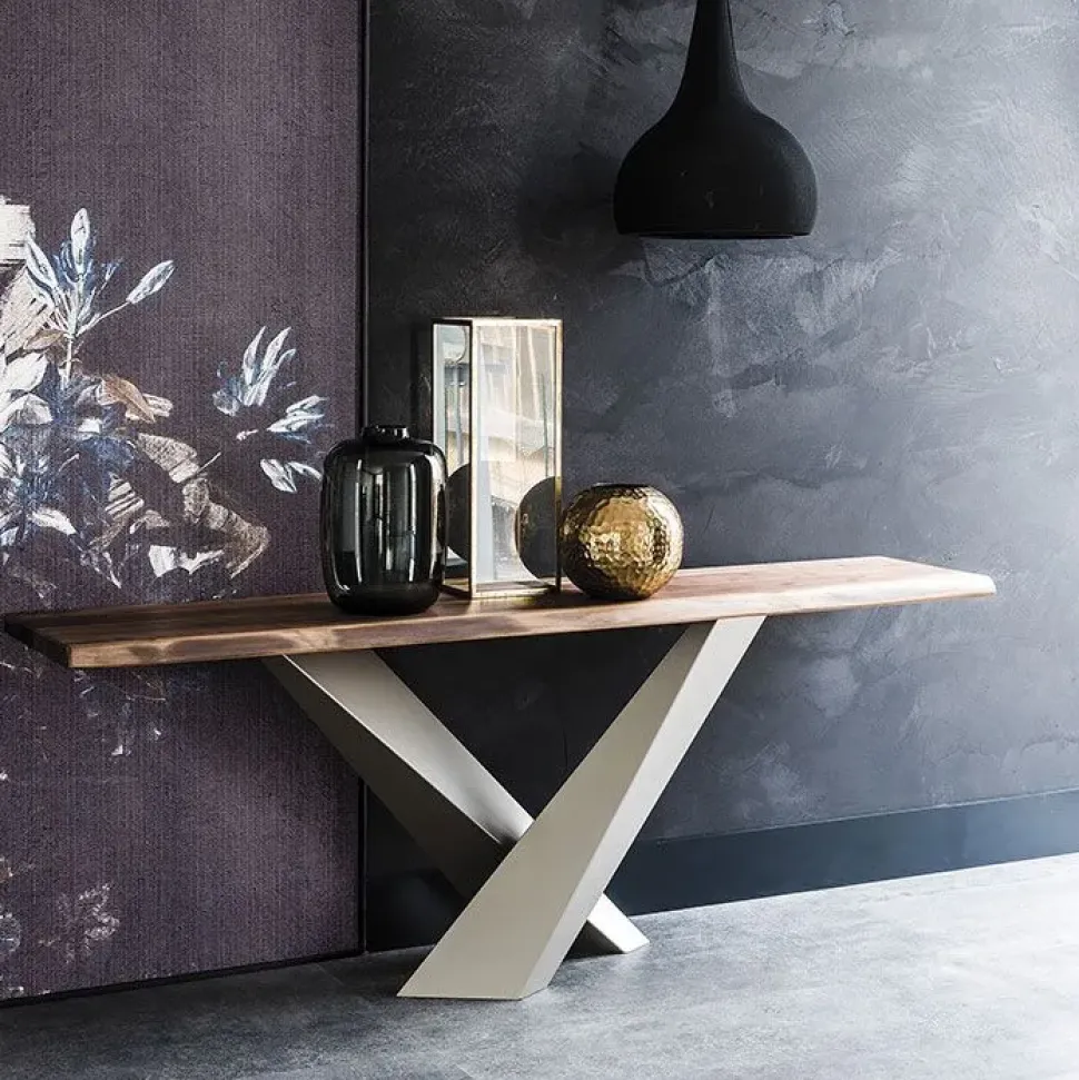 - Le consolle, unitamente alle sedie e ai tavoli, sono i pezzi di arredo più essenziali in ogni abitazione, non per altro è fondamentale sceglierli a seconda delle richieste pratiche ed estetiche: il modello Stratos nella fotografia, ad esempio, è realizzato in legno.