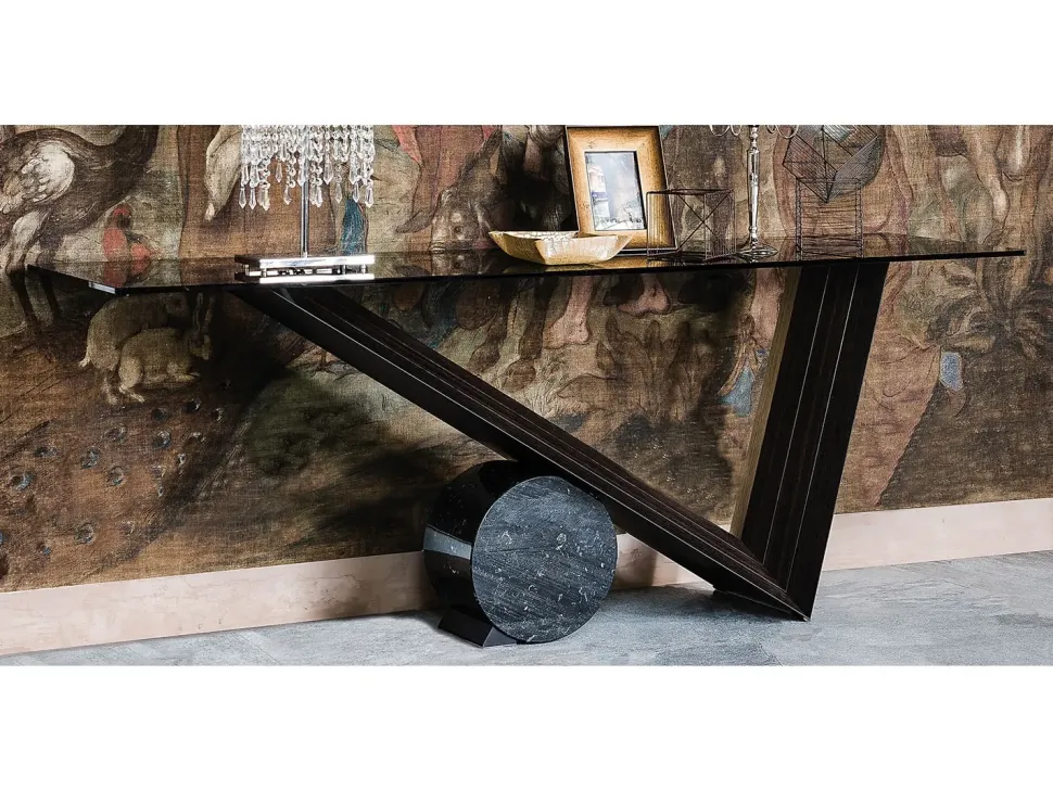 La consolle Valentino qui visibile ha un piano costruito in vetro di grande impatto estetico, sopra al quale potrai posare oggettistica d’uso quotidiano nonchè propriamente decorativo garantendoti anni di resistenza al uso prolungato.
