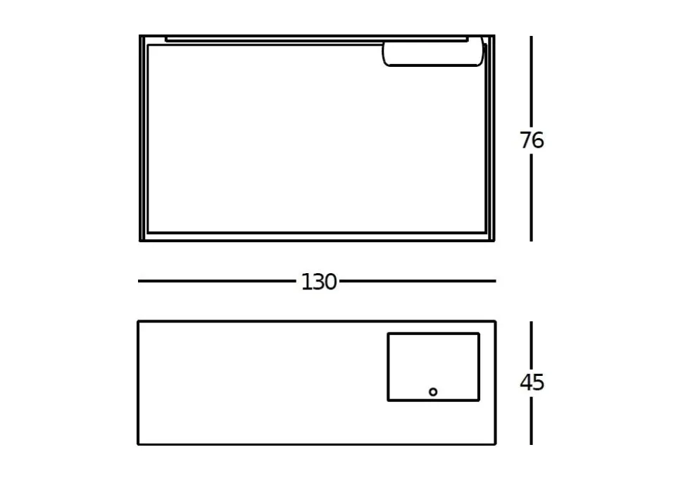 MIS.:L 130 X 45 X 76 H – Struttura e piano in acciaio verniciato colore bianco, nero o grafite. Piano e vano portaoggetti in cuoio pigmentato 90.