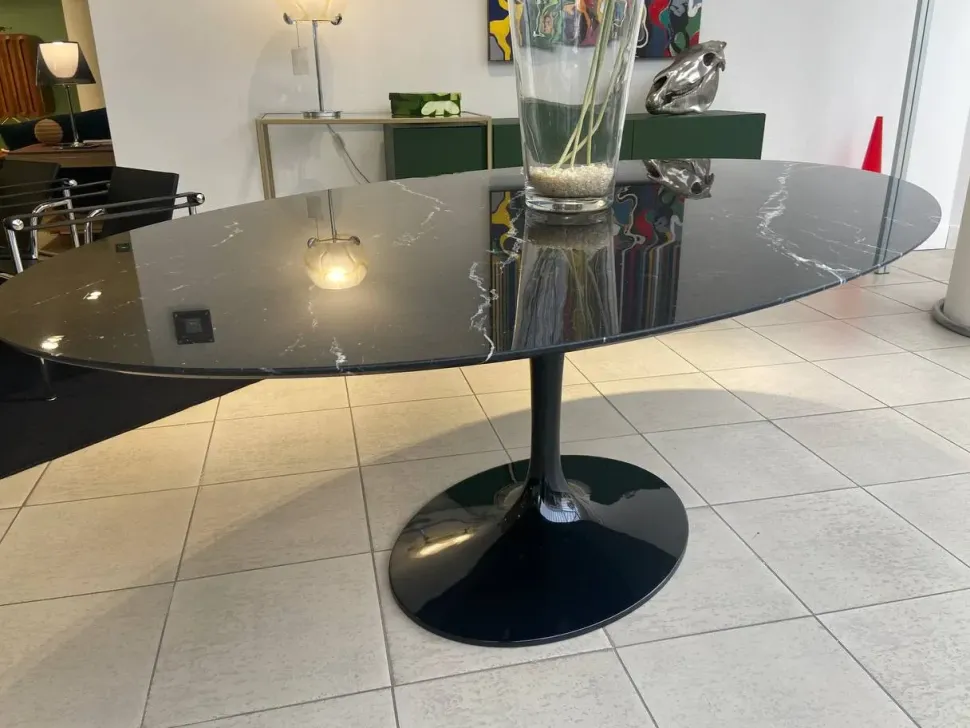 Top in marmo Nero Marquinia e base in fusione di alluminio laccato lucido col. nero
