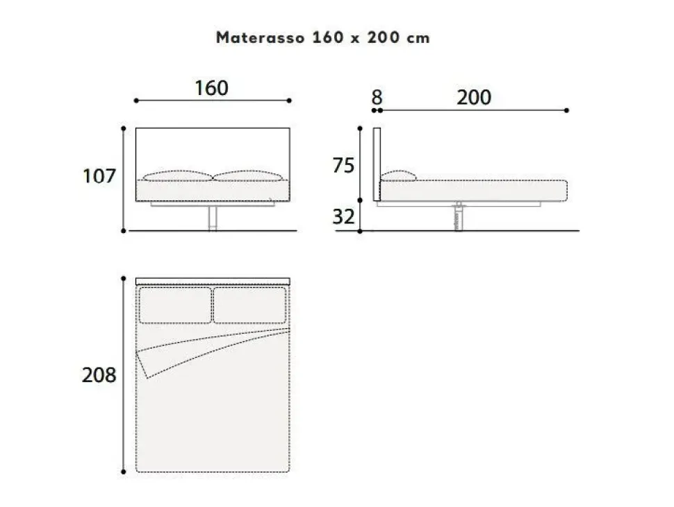 - Materasso: nessun materasso incluso, disponibile con sovrapprezzo