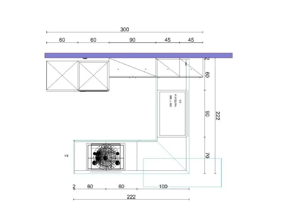 - Disposizione: con penisola