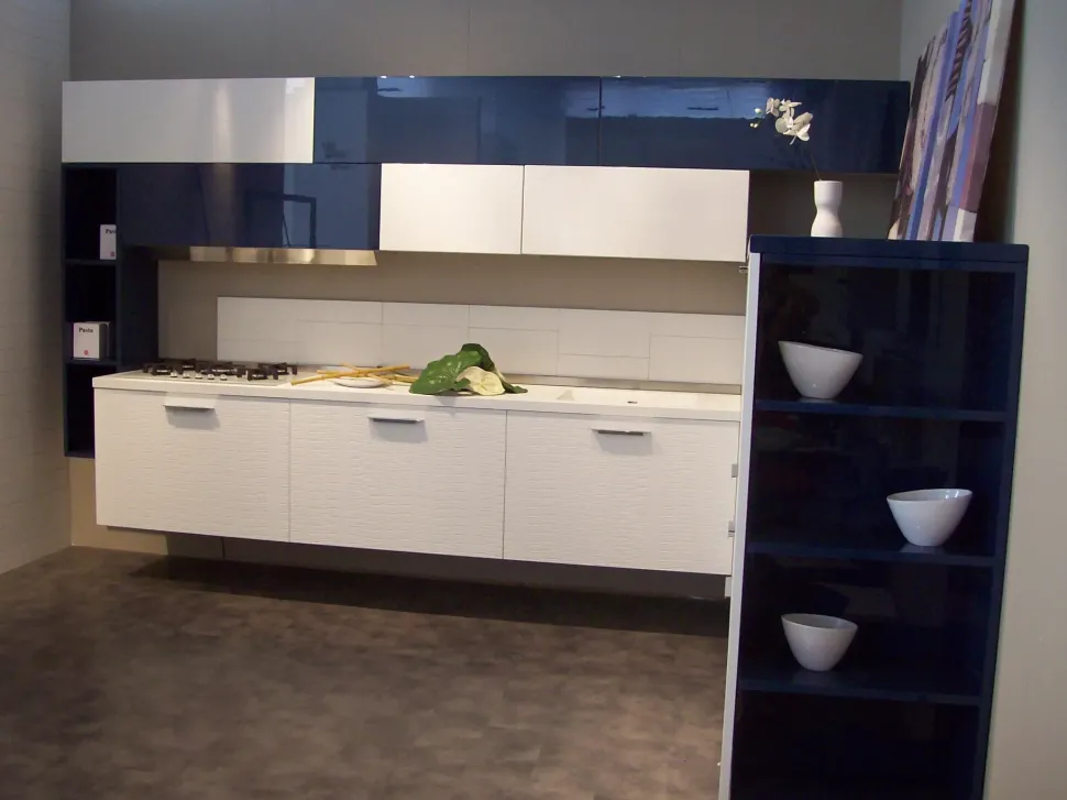 Cucina ad angolo in laccato lucido bianca Plan materic a prezzo ribassato