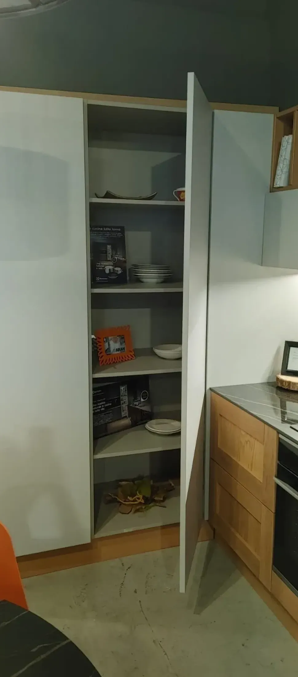 Il colore della cucina non è mai da prendere sotto gamba: se desideri una composizione rovere chiaro, questo modello Cucina aran licia nella fotografia sarà l’ideale.